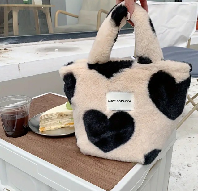 ハンドバッグ バッグ ファー レディース ファーバッグ ハート柄 ベージュ ブラック 秋 冬 可愛い