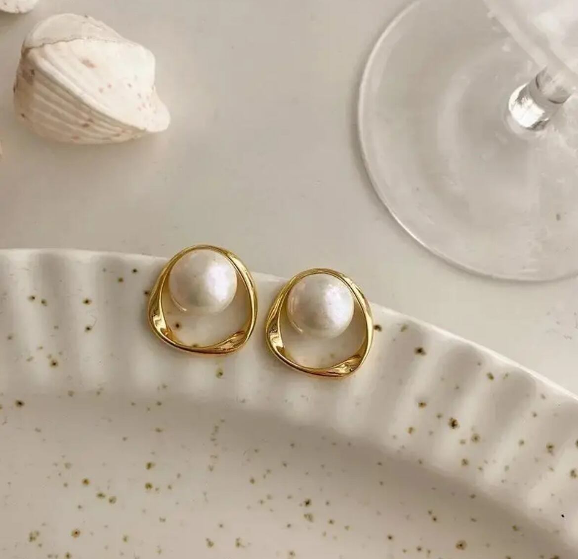 洗練されたシンプルさが魅力の、ゴールドカラーのパールピアスが新登場!