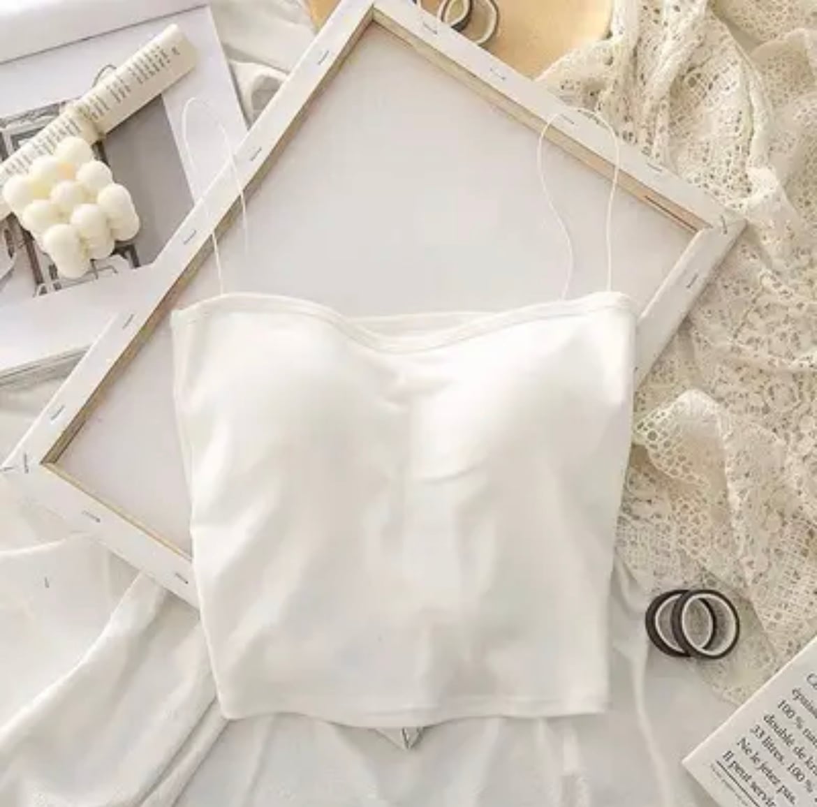 キャミソール カップ付き ノースリーブ クロップド丈 ブラック ホワイト ブルー グレー ピンク ブラウン SYTP105