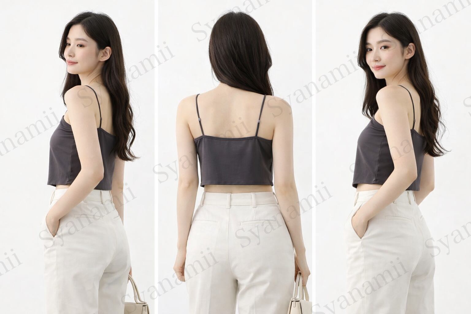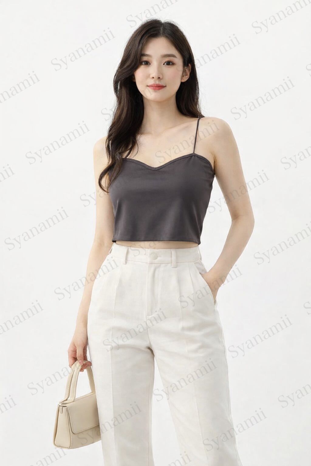 キャミソール カップ付き ノースリーブ クロップド丈 ブラック ホワイト ブルー グレー ピンク ブラウン SYTP105