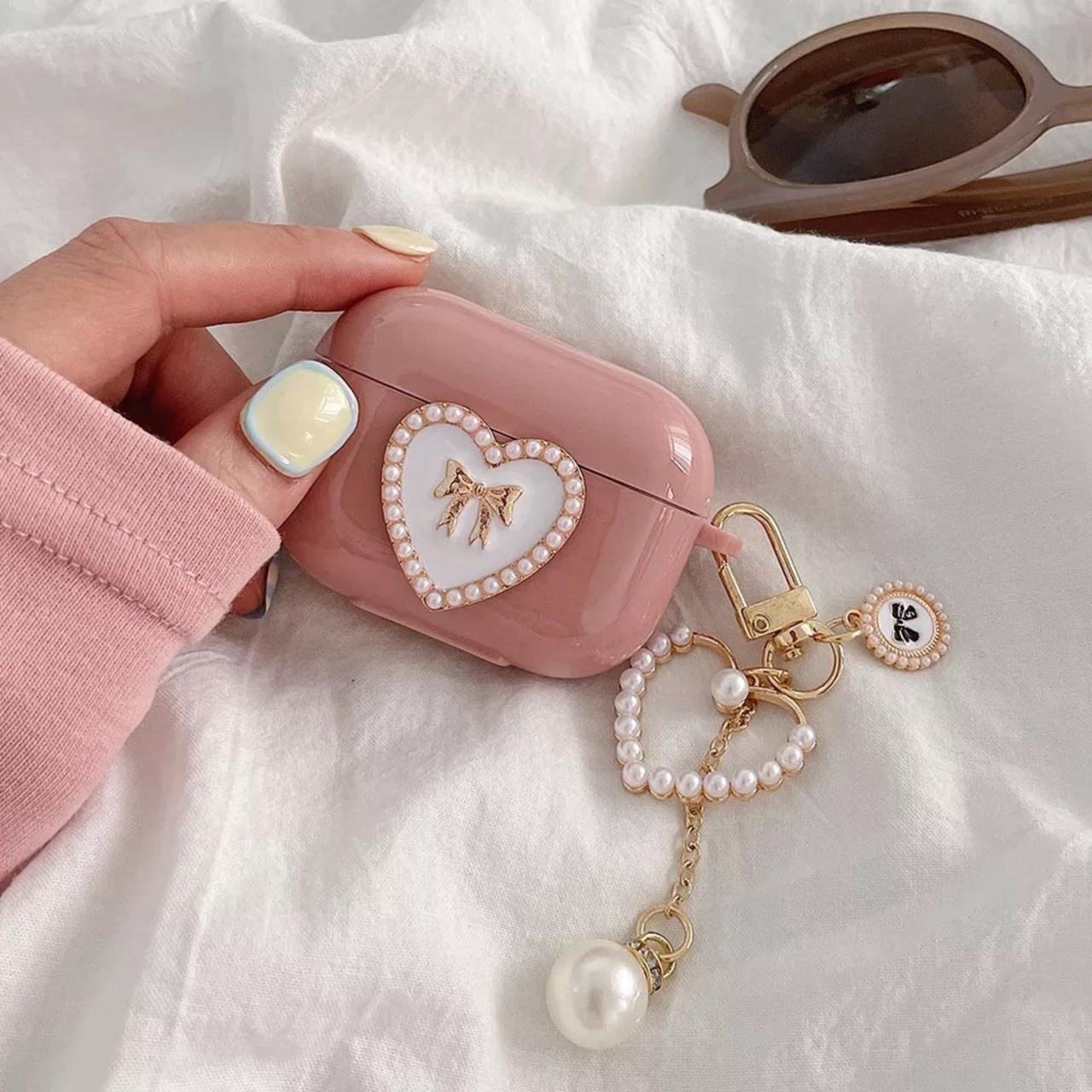パール チャーム付き ピンク ハート AirPodsケース