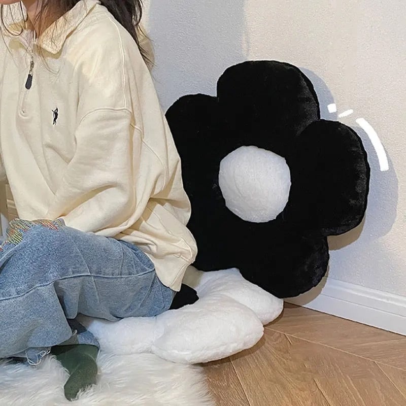 花びらのように丸く広がった、手触りの良いふわふわなクッションです。
