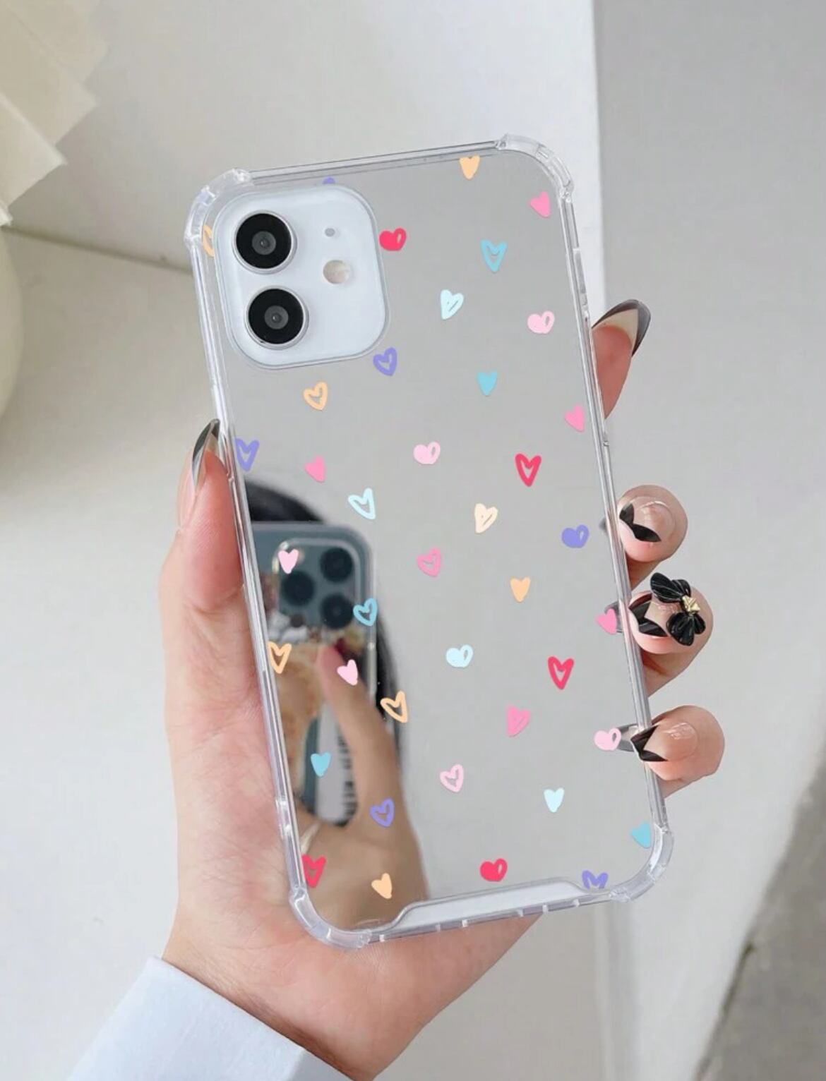 ハート柄 ミラー シルバー iPhoneケース スマホケース