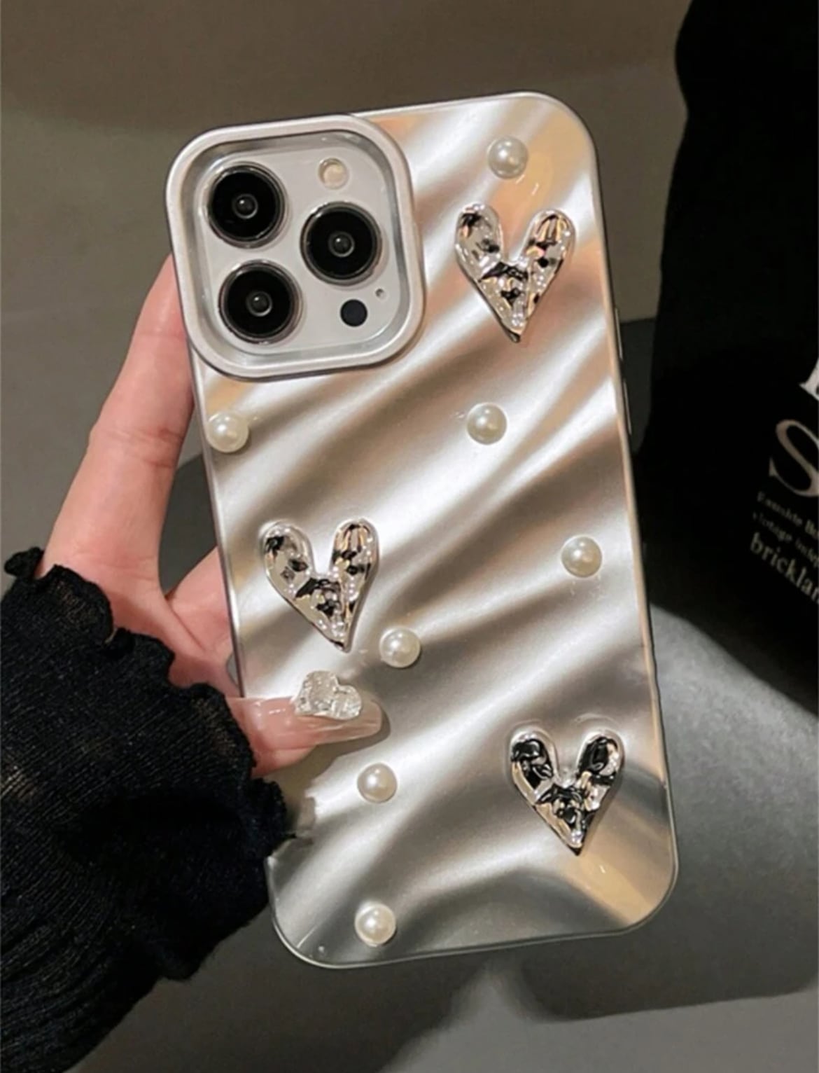 パール ハート ミラー シルバー iPhoneケース スマホケース