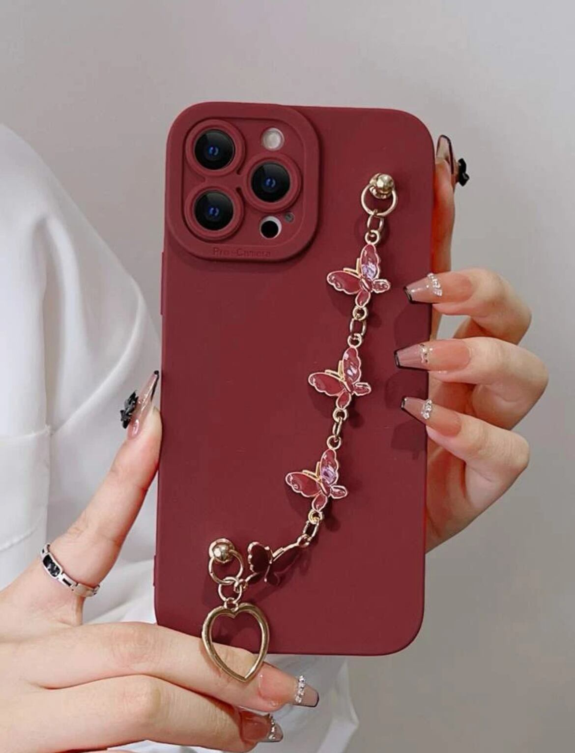 バタフライ 蝶々 ハンドストラップ付き レッド iPhoneケース スマホケース
