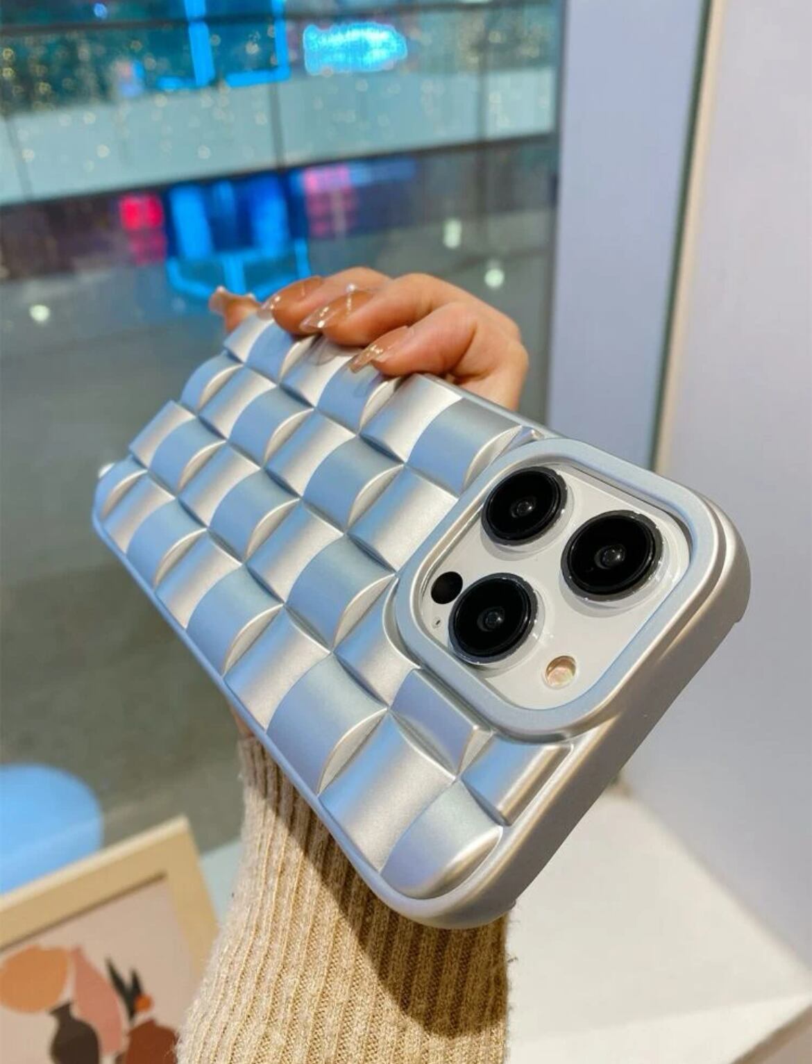 格子編み風 エンボス シルバー iPhoneケース スマホケース