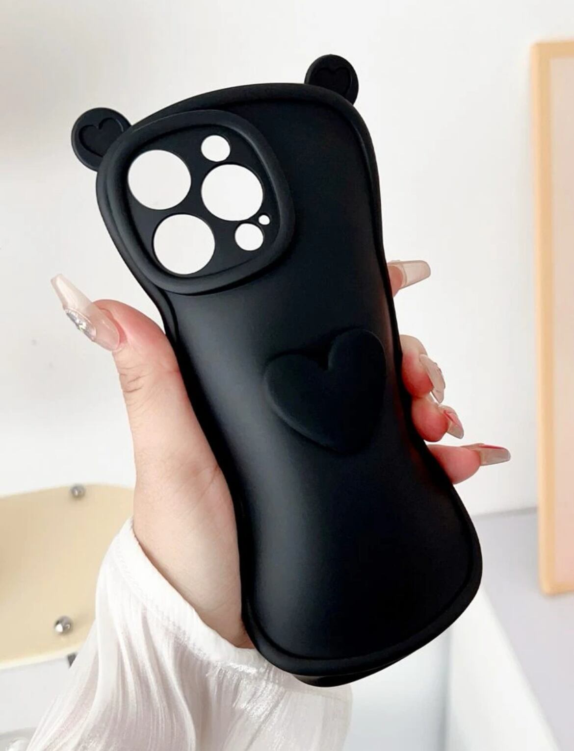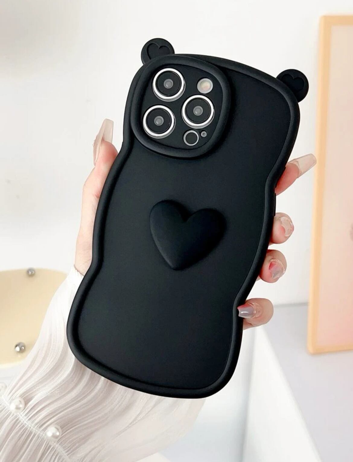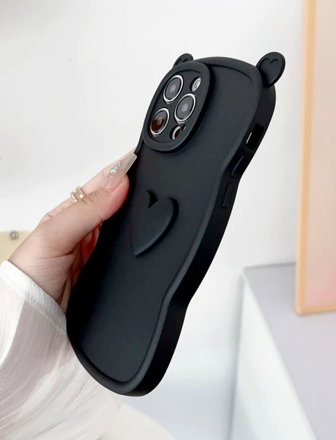 くま 耳 クマ耳 ハート ウェーブフレーム シンプル ブラック iPhoneケース スマホケース