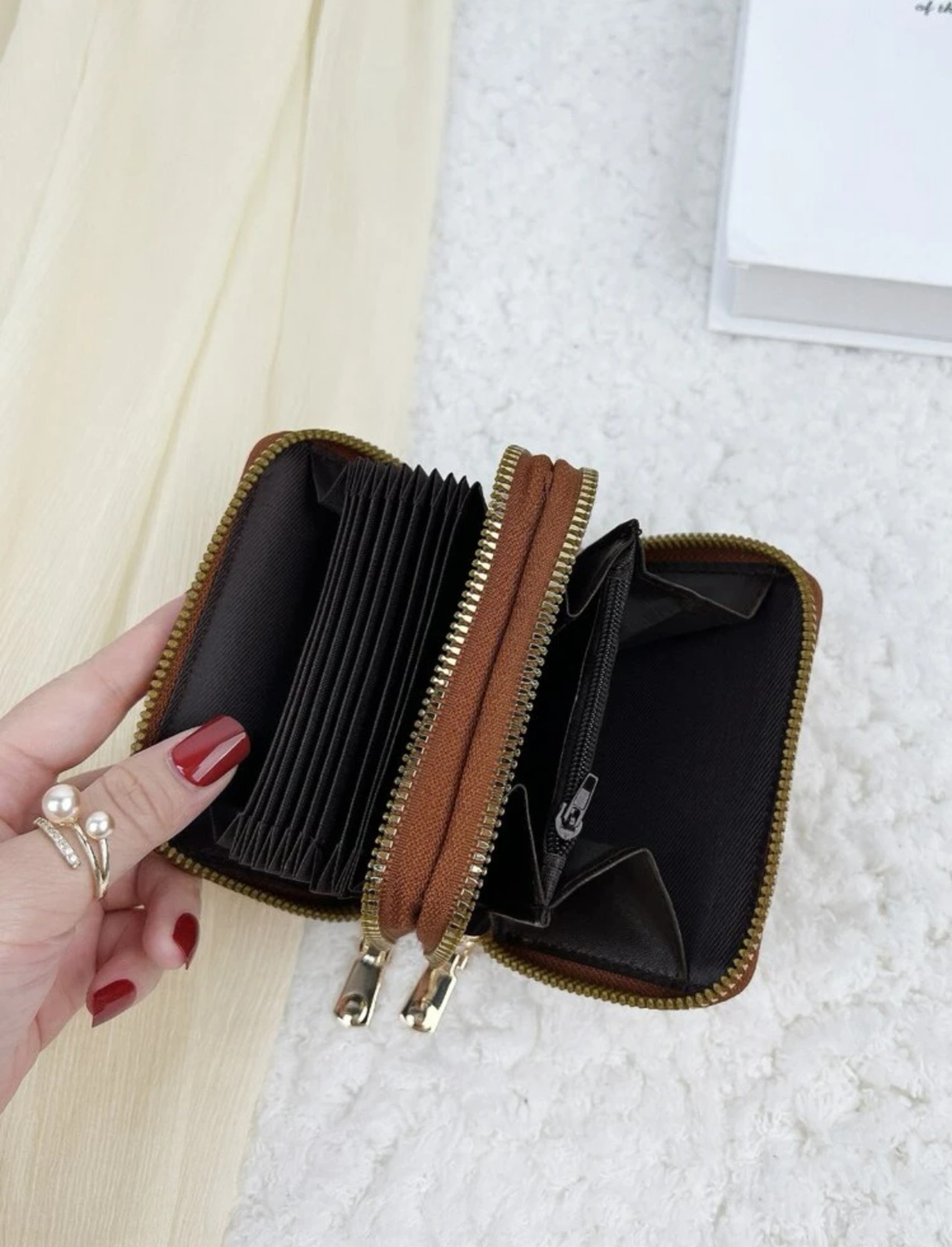 シンプル ミニウォレット ミニ財布 小銭入れ カードケース カード入れ ブラウン
