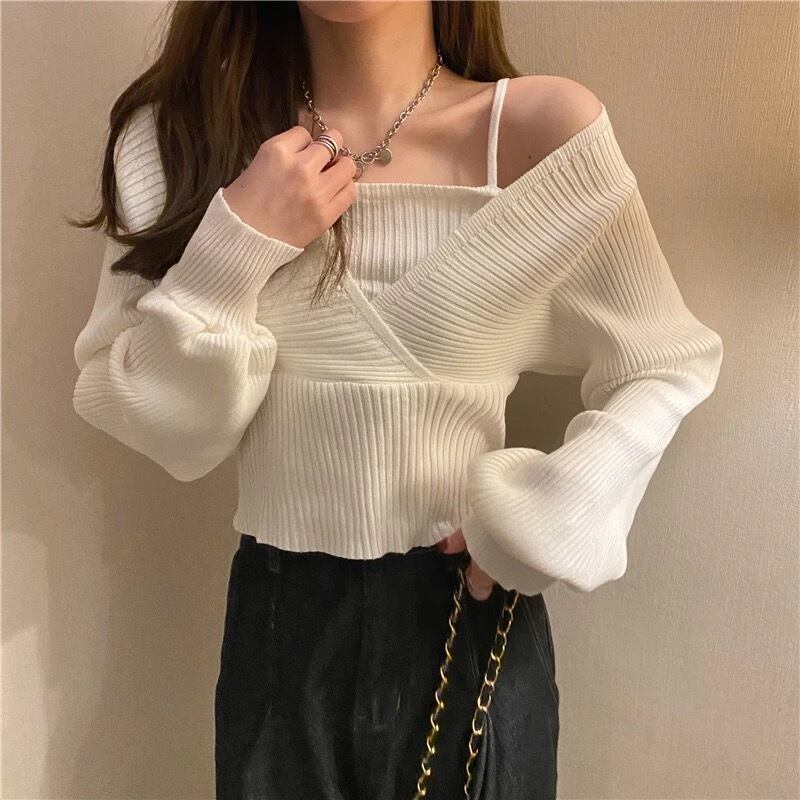 【即納】 セーター レディース ニットセーター バルーン袖 ぽわん袖 スクエアネック ニット レイヤード トップス 長袖 秋 冬 ニットトップス 着痩せ レディースニット 春 ホワイト ブラック ブラウン 白 黒 茶 お洒落 | Syanamii - 3点購入+フリーギフト1点