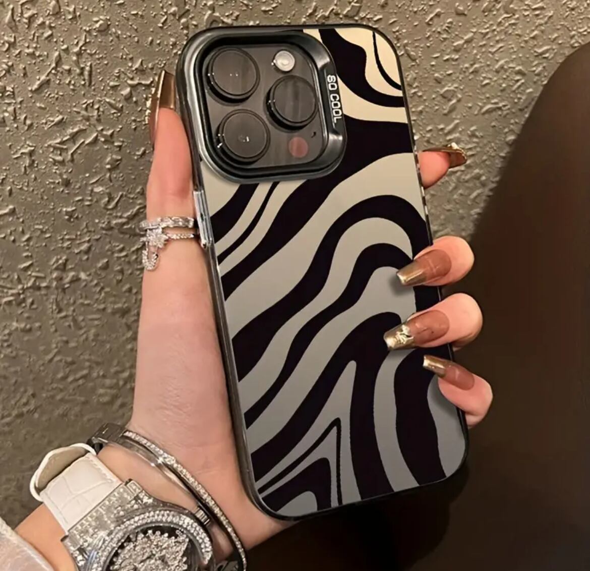 iPhoneケース ゼブラ柄 ブラック シルバー スマホカバー スマホケース 携帯カバー
