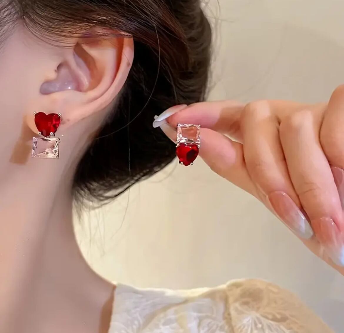 ピアス 両耳用 ゴールド ハート クリスタル レッド レディース 上品 結婚式 パーティー 入学式 卒業式 お呼ばれ プレゼント