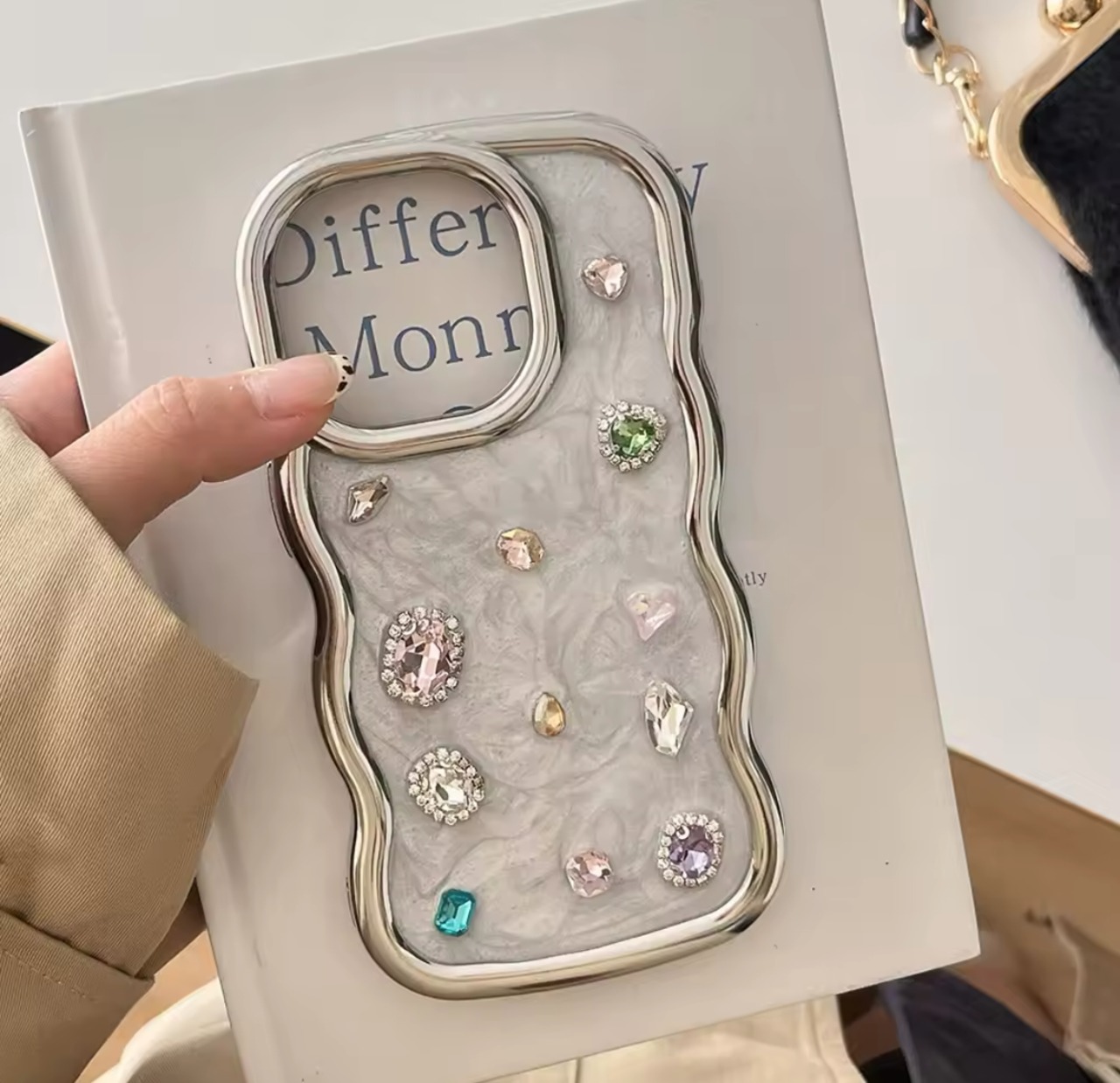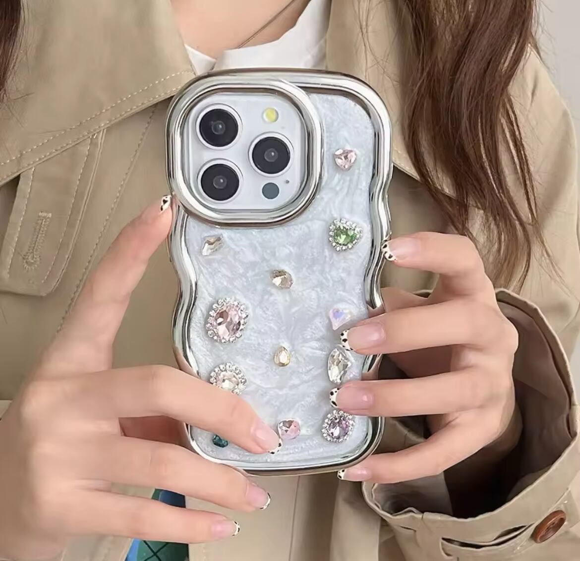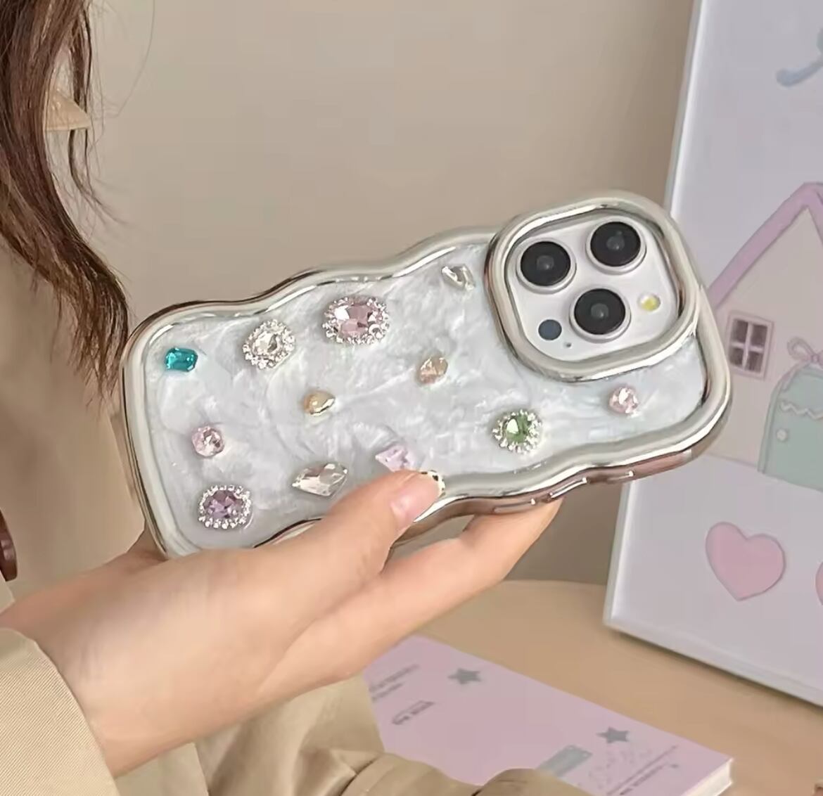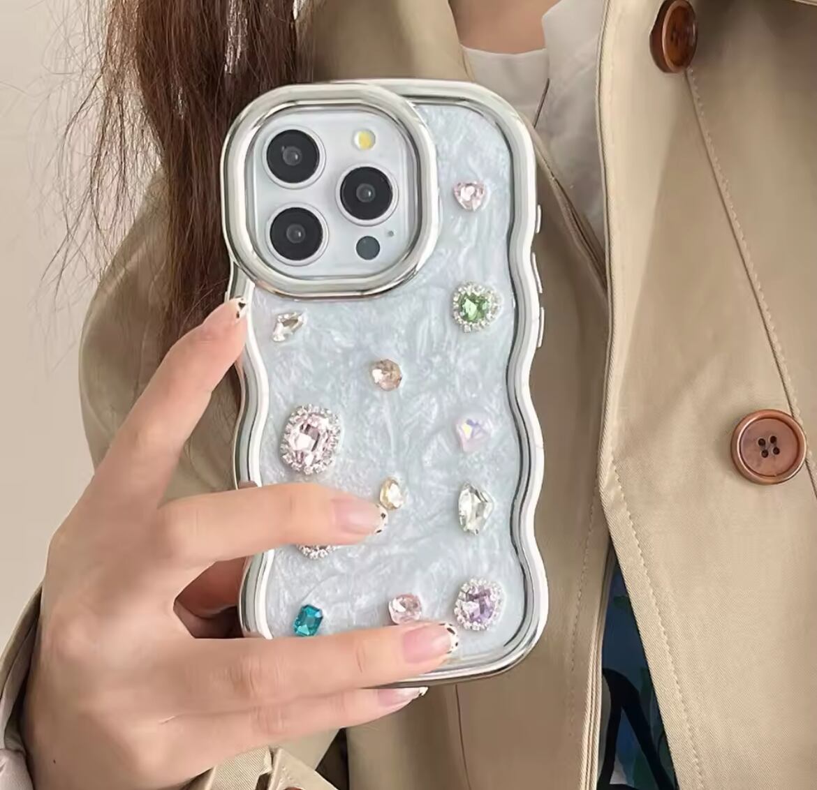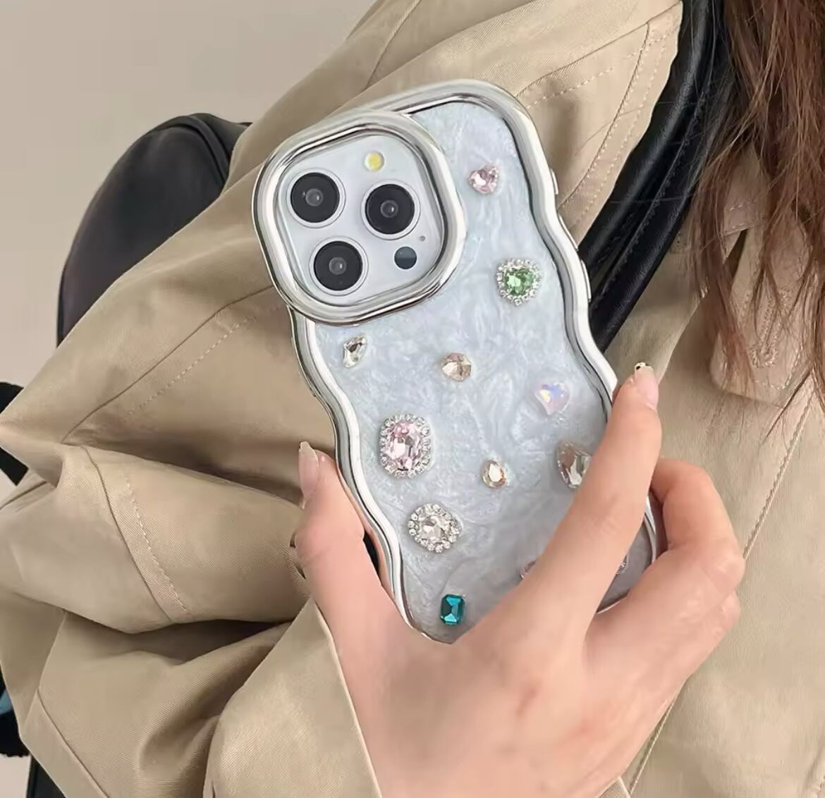 iPhoneケース スマホケース iPhoneカバー スマホカバー 衝撃防止 耐衝撃 ウェーブフレーム Y2K ワンホン キラキラ 宝石 ダイヤモンド 韓国 | Syanamii - 3点購入+フリーギフト1点